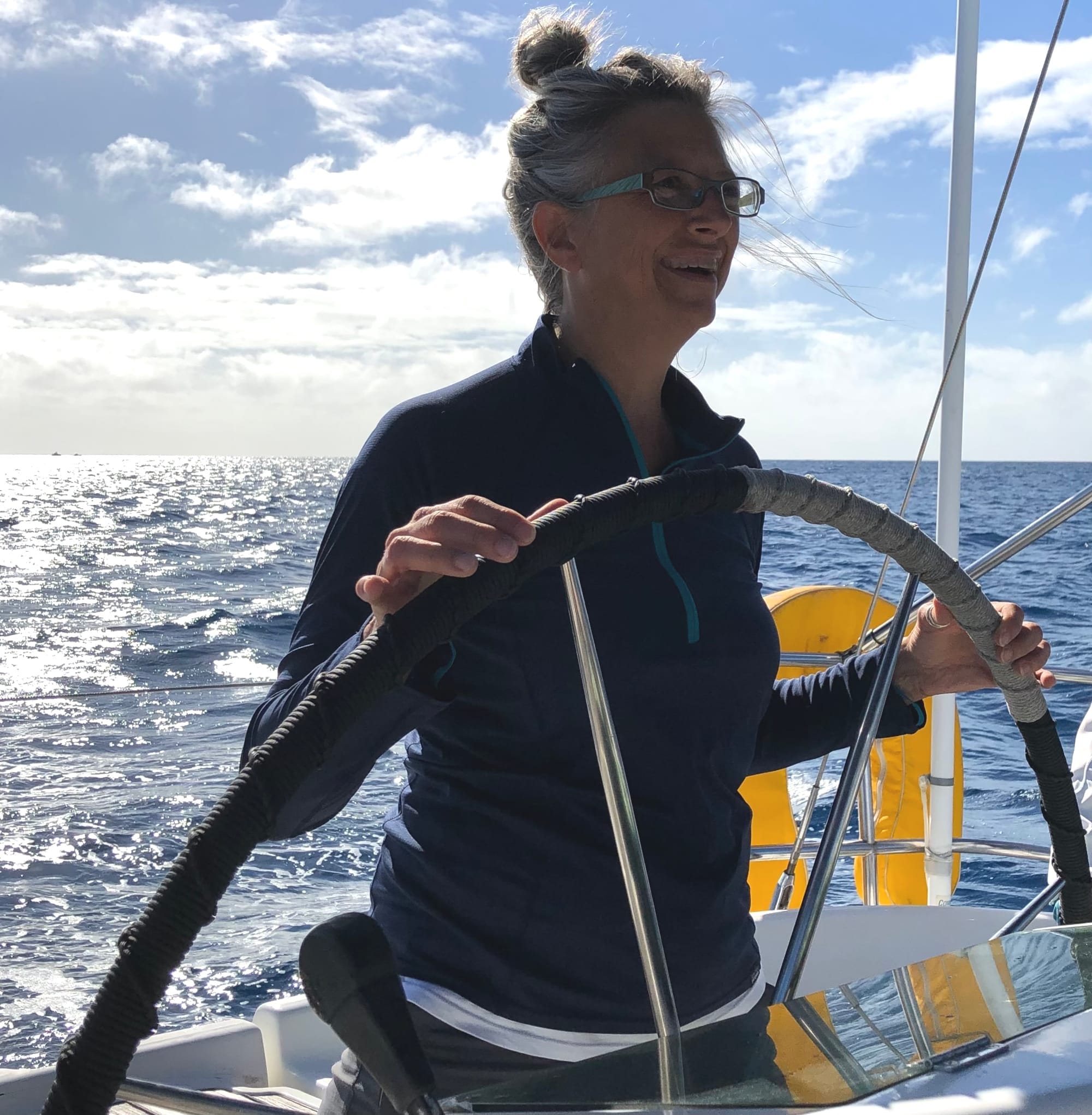 Once the sails were raised, the engine went quiet, and we gently heeled on to a beam reach. Wendy took the helm. A few moments later, she was in silent tears. Concerned, we asked if she was alright. She replied, “Some times I do this - I tear up when I’m overwhelmed with beauty. The sea, the sun, the wind moving the boat — it's magic. I love it.”