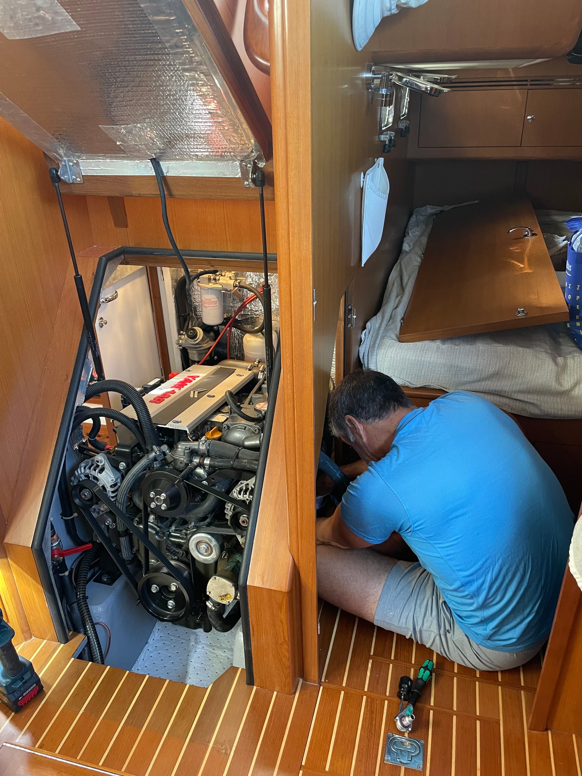 Behold, our strike through list of completed tasks detailing projects, large and small. Some take several hours to complete, others several days, weeks, or even months. More than several tasks have been on our list since we moved aboard more than 3 years ago. Many involve research and new parts, new tools, etc. And almost all tend involve boat yoga - contorting our bodies to fit into tight spaces or stretch and move in new ways.